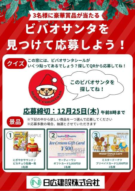 みなさんこんにちは! クリスマス【クイズイベント🎄】のお知らせです!! 期間: 2025年12月25日(木)午前8:00応募締切場所 :相模大野3丁目…