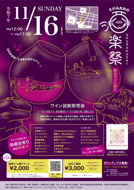 みなさんこんにちは! 11/16(日)相模大野北口コリドー通りで『さがみおおの酒楽祭SHURAKUSAI秋のワイン祭り』が開催されます! 今回の酒楽祭…